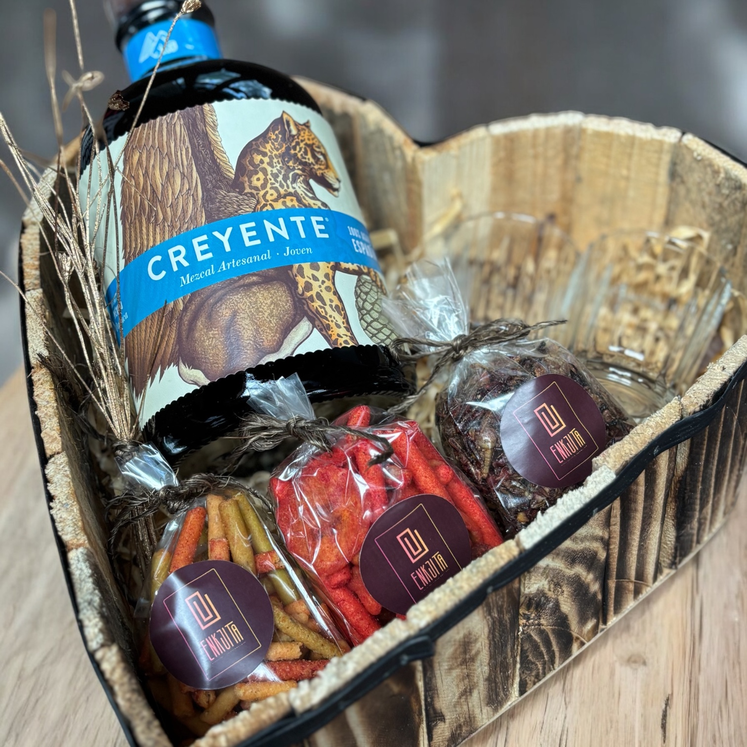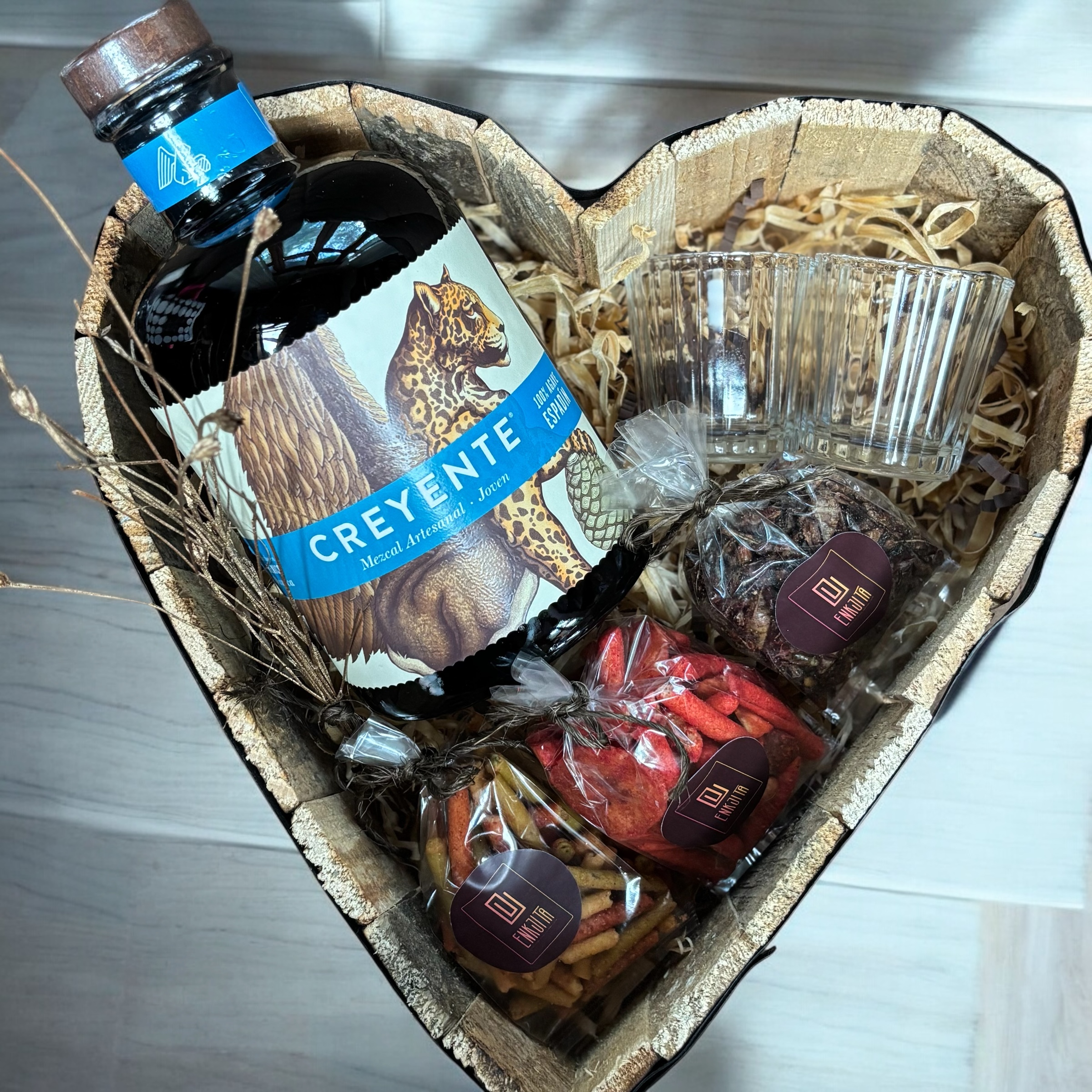 Descubre el regalo perfecto que combina tradición, sabor y estilo. Nuestra caja de madera en forma de corazón o en huacalito tradicional está disponible y viene y trae todo lo que necesitas para brindar con un toque muy mexicano y exclusivo para cualquier ocasión especial.